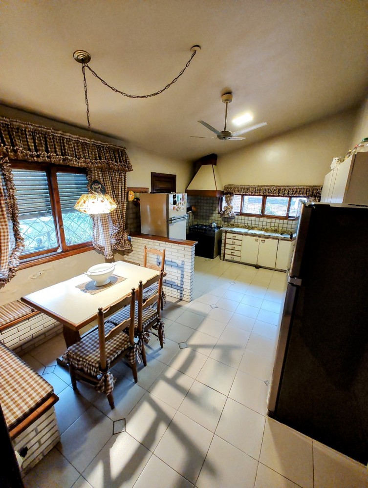 Casa grande de 4 o mas dormitorios, sala estar, cocina, living comedor con estufa a leña, 2 baños, garaje para 4 vehículos. Patio con piscina y churrasquera.